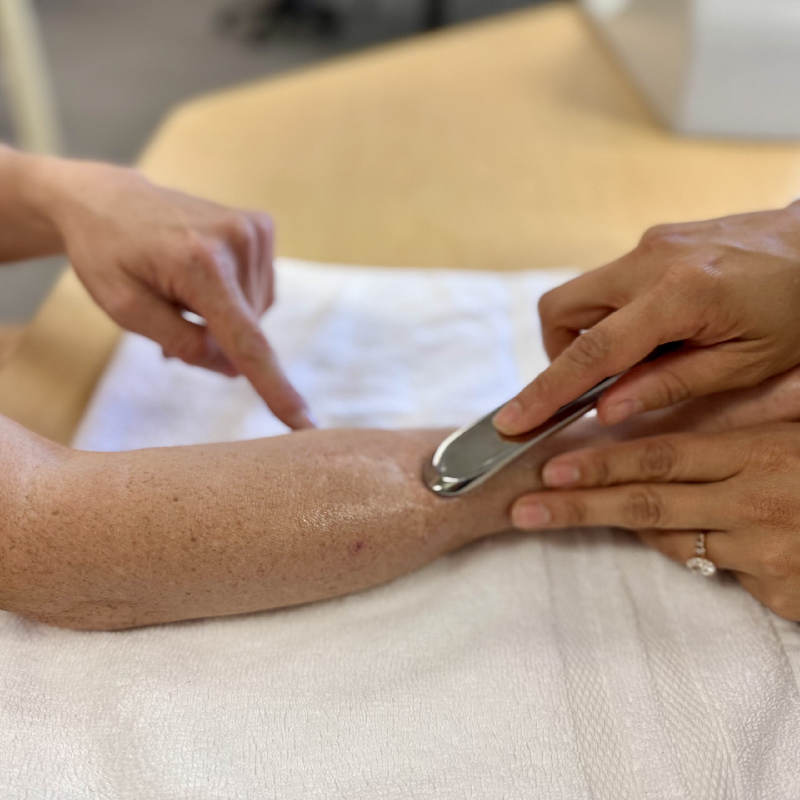 is a manual therapy technique that uses specialized tools to identify and treat soft tissue restrictions. It helps improve circulation, reduce pain, and speed up recovery—making it an effective option for both injury rehab and chronic muscle tension.